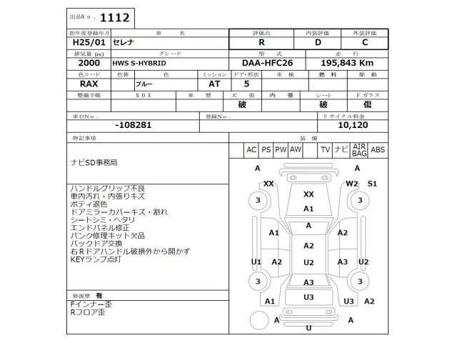 Nissan SERENA Лот 1112, торги от 19.01.2026