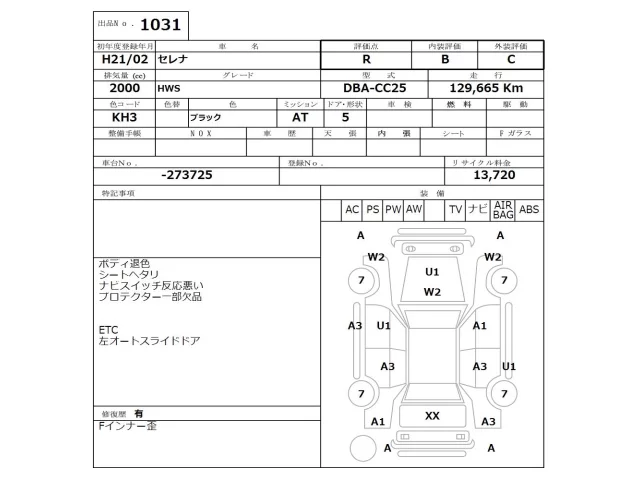 Nissan SERENA Лот 1031, торги от 16.03.2026