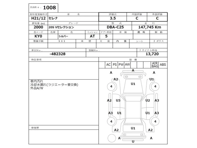 Nissan SERENA Лот 1008, торги от 23.03.2026