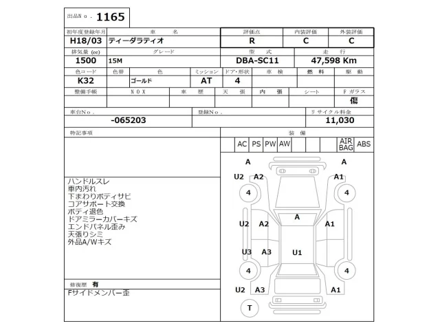 Аукцион NISSAN Osaka Дата аукциона 17.11.2025 Год2006 Тип кузоваСедан Номер кузоваSC11 Объем1500 сс Трансмиссия Автомат Привод Автомат Пробег 47 000 км Цветсеребро ОценкаR