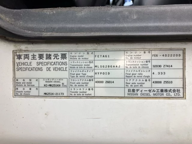 Номер кузоваMK251KH