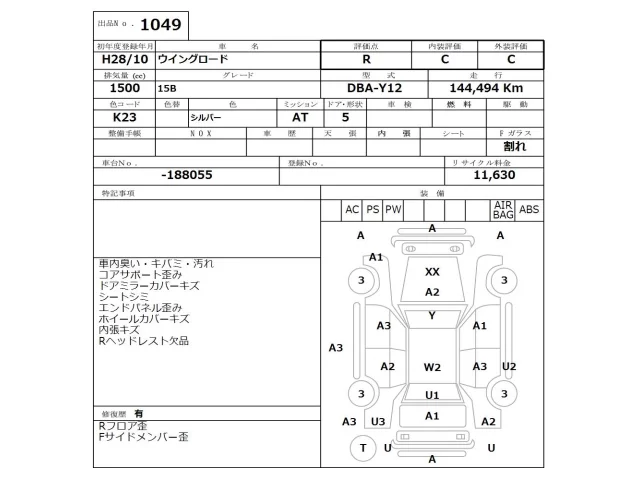 Nissan WINGROAD Лот 1049, торги от 19.01.2026