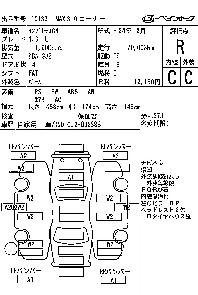 Аукцион BAYAUC Дата аукциона 01.04.2026 Год2012 Номер кузоваGJ2 Объем1600 сс Трансмиссия FAT Привод Автомат Пробег 70 000 км Цветбелый ОценкаR