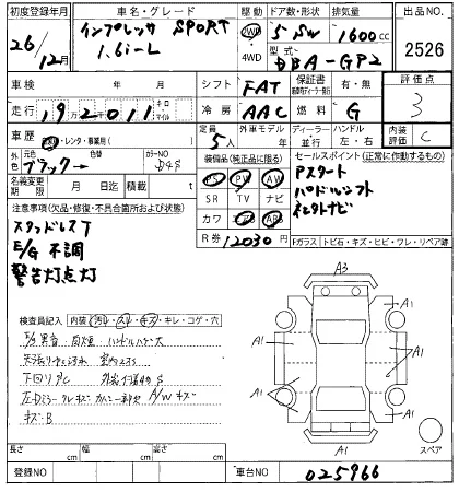 Аукцион HERO Дата аукциона 19.11.2025 Год2014 Тип кузоваХэтчбек Номер кузоваGP2 Объем1600 сс Трансмиссия FA Пробег 193 000 км Цветчерный Оценка3