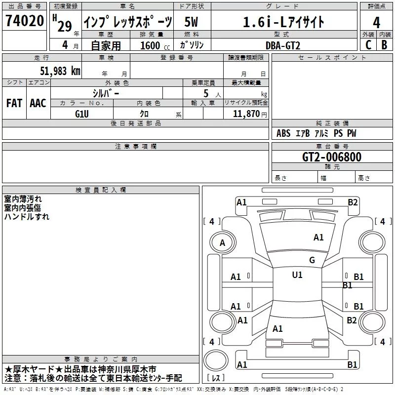 Аукцион TAA Yokohama Дата аукциона 27.12.2025 Год2017 Тип кузоваХэтчбек Номер кузоваGT2 Объем1600 сс Трансмиссия FAT Пробег 52 000 км Цветсеребро Оценка4