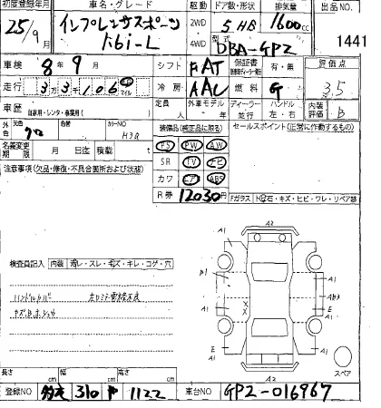 Subaru IMPREZA Лот 1441, торги от 21.01.2026
