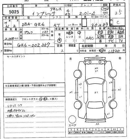 Subaru IMPREZA Лот 5025, торги от 10.03.2026