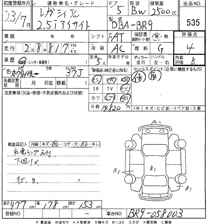 Subaru LEGACY Лот 535, торги от 10.12.2025