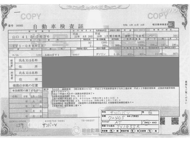 Subaru SAMBAR Лот 139, торги от 20.01.2026