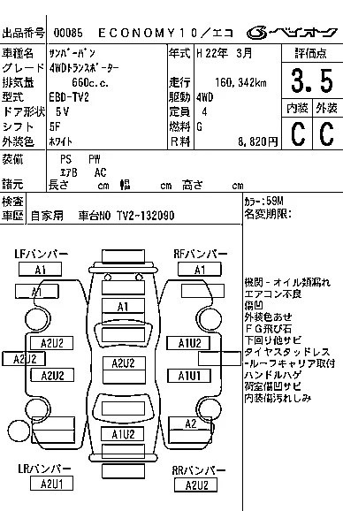 Аукцион BAYAUC Дата аукциона 08.04.2026 Год2010 Тип кузоваЦельнометаллический фургон Номер кузоваTV2 Объем660 сс Трансмиссия 5F Пробег 161 000 км Цветбелый Оценка3.5
