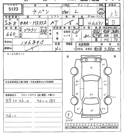 Аукцион SAA Sapporo Дата аукциона 18.11.2025 Год2016 Тип кузоваХэтчбек Номер кузоваHE33S Объем660 сс Трансмиссия Автомат Привод FF,FULLTIME4WD Пробег 47 000 км Цветкоричневый Оценка3.5