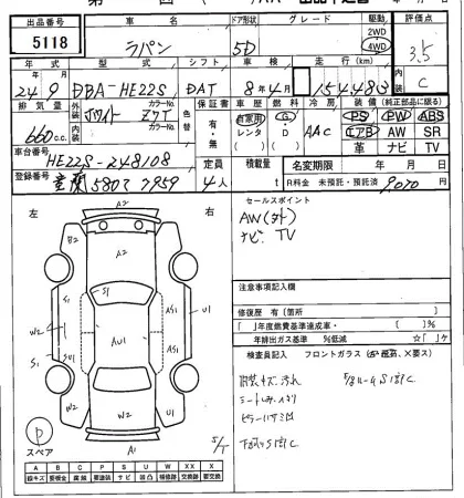 Аукцион SAA Sapporo Дата аукциона 17.03.2026 Год2012 Тип кузоваХэтчбек Номер кузоваHE22S Объем660 сс Трансмиссия Автомат Привод FF,FULLTIME4WD Пробег 154 000 км Цветбелый Оценка3.5