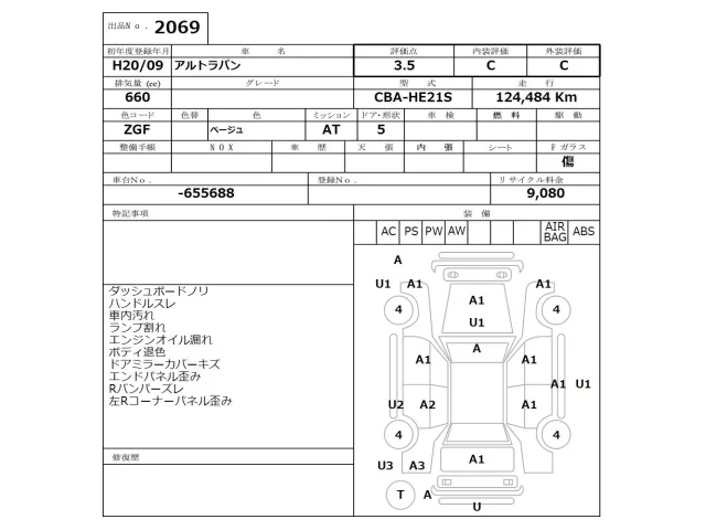 Аукцион NISSAN Osaka Дата аукциона 30.03.2026 Год2008 Тип кузоваХэтчбек Номер кузоваHE21S Объем660 сс Трансмиссия Автомат Привод FF,FULLTIME4WD Пробег 124 000 км Цветбежевый Оценка3.5