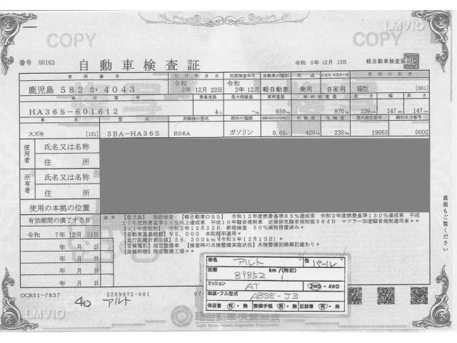 Suzuki ALTO Лот 40, торги от 20.01.2026