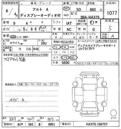 Аукцион HERO Дата аукциона 18.02.2026 Год2024 Тип кузоваХэтчбек Номер кузоваHA37S Объем660 сс Трансмиссия IA Привод FF,FULLTIME4WD Пробег 6 000 км Цветбелый Оценка5