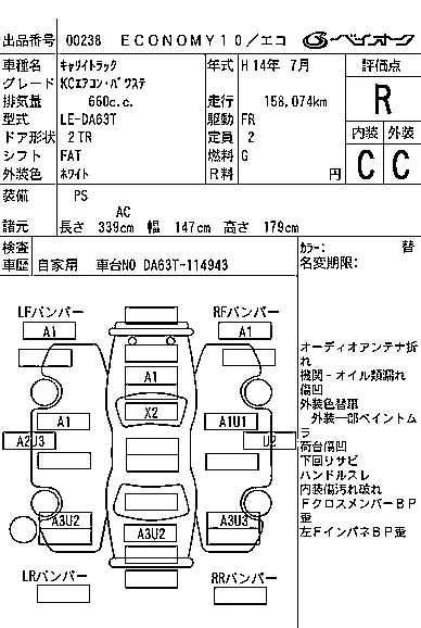 Аукцион BAYAUC Дата аукциона 25.03.2026 Год2002 Тип кузоваБортовой грузовик Номер кузоваDA63T Объем660 сс Трансмиссия FAT Пробег 158 000 км Цветбелый ОценкаR