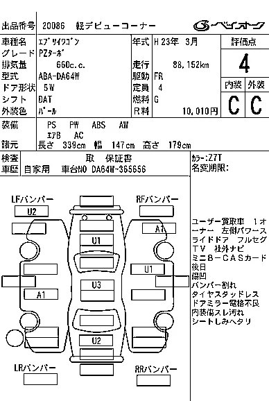Аукцион BAYAUC Дата аукциона 08.04.2026 Год2011 Номер кузоваDA64W Объем660 сс Трансмиссия DAT Привод FR,FULLTIME4WD,PARTT Пробег 89 000 км Цветбелый Оценка4