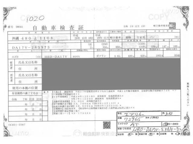 Номер кузоваDA17V