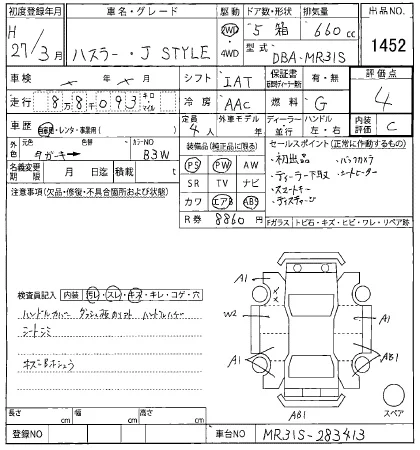 Suzuki HUSTLER Лот 1452, торги от 21.01.2026