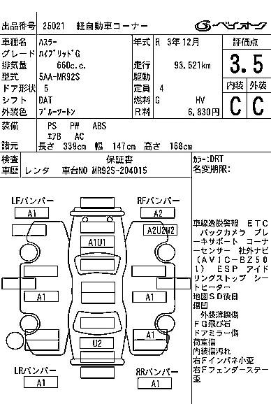 Номер кузоваMR92S
