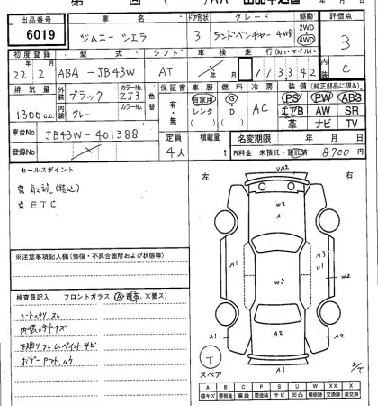 Аукцион SAA Sapporo Дата аукциона 07.04.2026 Год2010 Тип кузоваДжип/SUV Номер кузоваJB43W Объем1300 сс Трансмиссия Автомат Привод PARTTIME4WD Пробег 113 000 км Цветчерный Оценка3