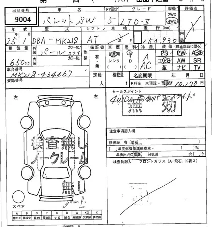 Аукцион SAA Sapporo Дата аукциона 17.03.2026 Год2013 Тип кузоваХэтчбек Номер кузоваMK21S Объем660 сс Трансмиссия Автомат Привод FF,FULLTIME4WD Пробег 155 000 км Цветжемчужно-белый