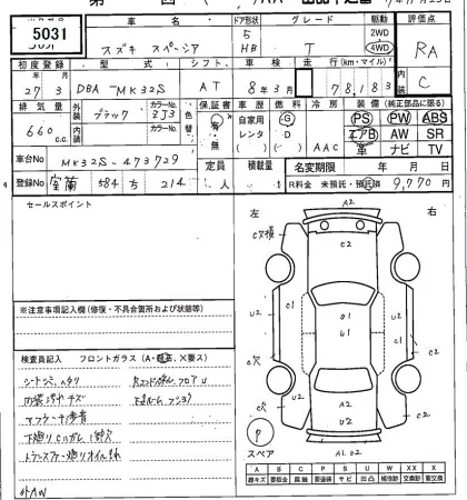 Аукцион SAA Sapporo Дата аукциона 25.11.2025 Год2015 Тип кузоваХэтчбек Номер кузоваMK32S Объем660 сс Трансмиссия Автомат Привод FF,FULLTIME4WD Пробег 78 000 км Цветчерный ОценкаRA