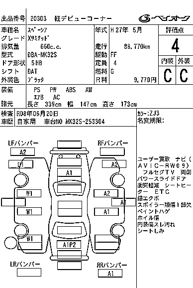 Аукцион BAYAUC Дата аукциона 26.11.2025 Год2015 Тип кузоваХэтчбек Номер кузоваMK32S Объем660 сс Трансмиссия DAT Привод FF,FULLTIME4WD Пробег 89 000 км Цветчерный Оценка4
