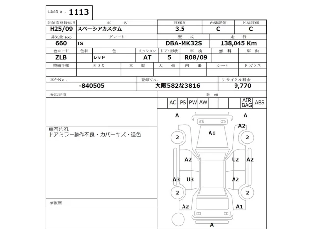 Аукцион NISSAN Osaka Дата аукциона 12.01.2026 Год2013 Тип кузоваХэтчбек Номер кузоваMK32S Объем660 сс Трансмиссия Автомат Привод FF,FULLTIME4WD Пробег 138 000 км Цветкрасный Оценка3.5