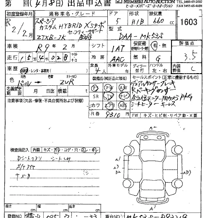 Suzuki SPACIA Лот 1603, торги от 08.04.2026