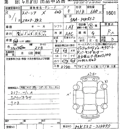 Suzuki SPACIA Лот 1601, торги от 08.04.2026