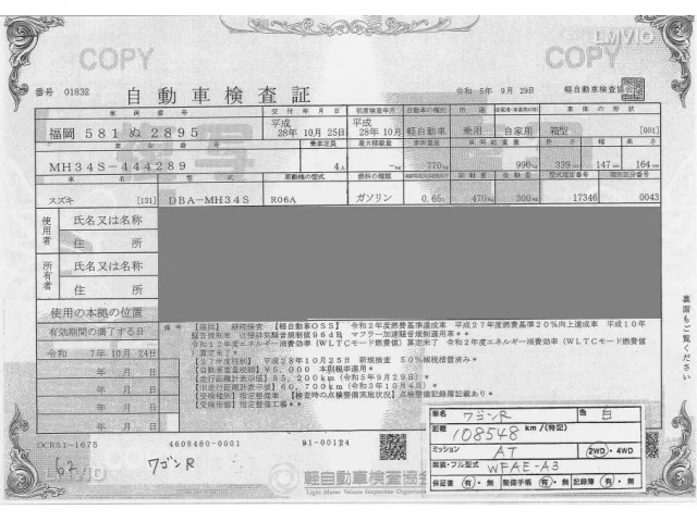 Suzuki WAGON R Лот 62, торги от 11.11.2025