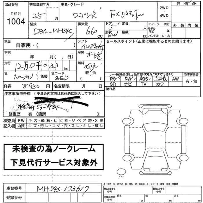 Аукцион JU Nara Дата аукциона 27.12.2025 Год2013 Тип кузоваХэтчбек Номер кузоваMH34S Объем660 сс Трансмиссия IAT Привод FF,FULLTIME4WD Пробег 120 000 км Цветфиолетовый