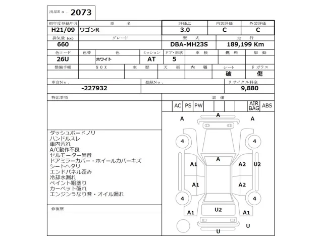 Аукцион NISSAN Osaka Дата аукциона 13.04.2026 Год2009 Тип кузоваХэтчбек Номер кузоваMH23S Объем660 сс Трансмиссия Автомат Привод FF,FULLTIME4WD Пробег 189 000 км Цветбелый Оценка3