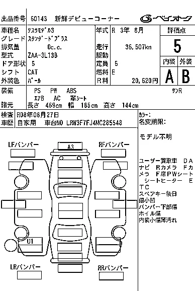 Tesla MODEL3 Лот 60143, торги от 25.02.2026