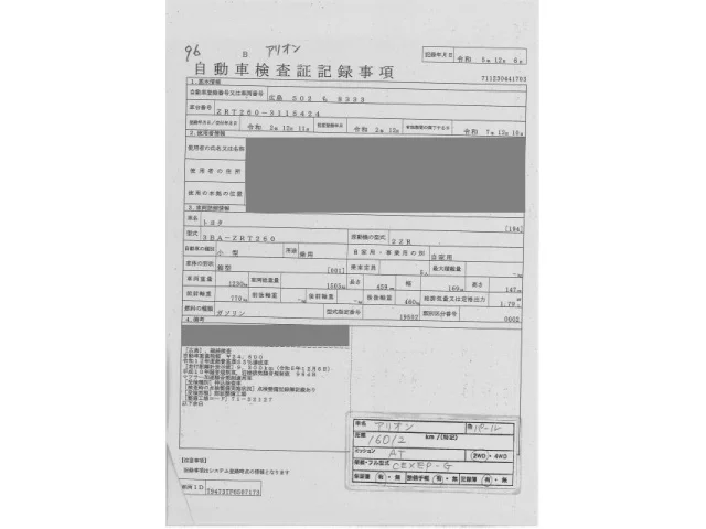 Toyota ALLION Лот 96, торги от 06.01.2026
