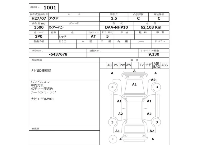 Toyota AQUA Лот 1001, торги от 17.11.2025