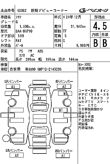 Toyota AQUA Лот 60002, торги от 26.11.2025