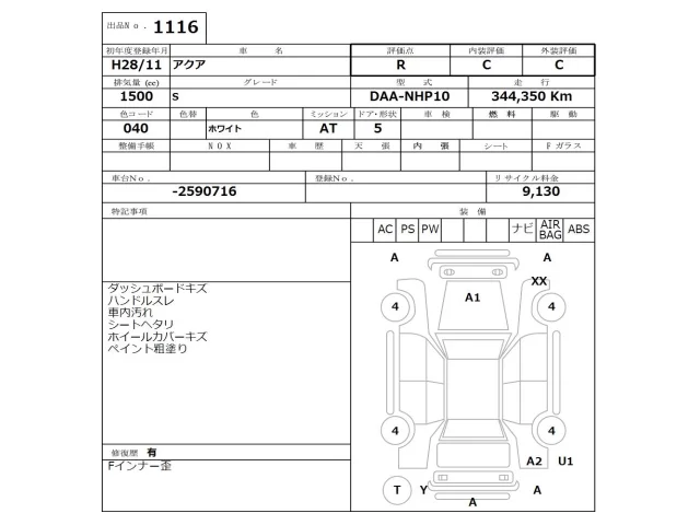 Toyota AQUA Лот 1116, торги от 12.01.2026