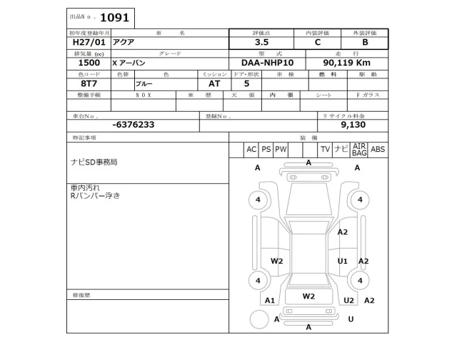 Toyota AQUA Лот 1091, торги от 19.01.2026
