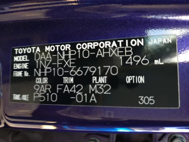 Номер кузоваNHP10