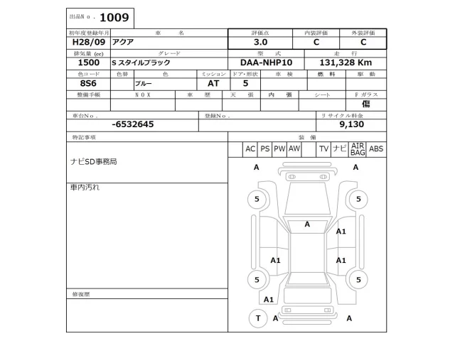 Toyota AQUA Лот 1009, торги от 16.03.2026