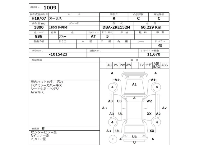 Аукцион NISSAN Osaka Дата аукциона 30.03.2026 Год2007 Тип кузоваХэтчбек Номер кузоваZRE152H Объем1800 сс Трансмиссия Автомат Привод Автомат Пробег 60 000 км Цветсиний ОценкаR