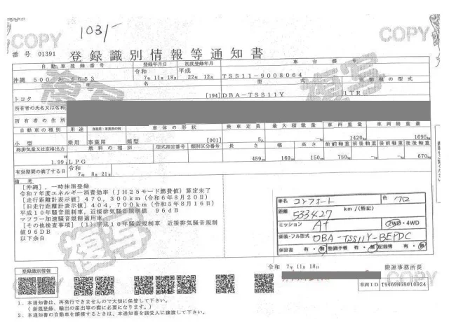 Toyota COMFORT Лот 1031, торги от 20.01.2026