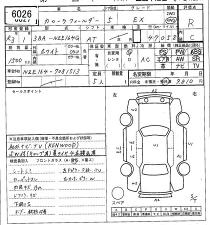 Toyota COROLLA FIELDER Лот 6026, торги от 17.03.2026