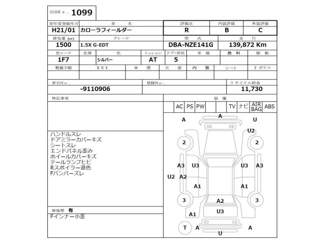 Toyota COROLLA FIELDER Лот 1099, торги от 23.03.2026