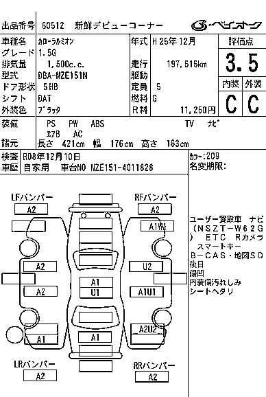 Аукцион BAYAUC Дата аукциона 18.02.2026 Год2013 Тип кузоваХэтчбек Номер кузоваNZE151N Объем1500 сс Трансмиссия DAT Привод Автомат Пробег 198 000 км Цветчерный Оценка3.5