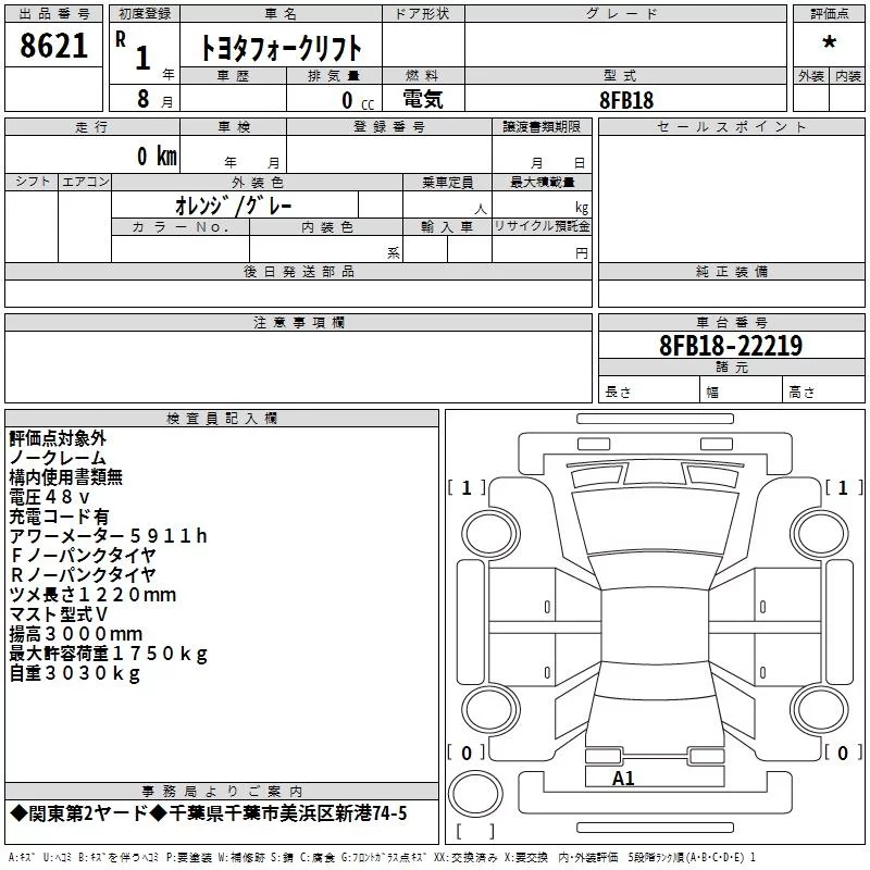 Аукцион TAA Kanto Дата аукциона 20.11.2025 Год2019 Номер кузова8FB18 Цветоранжевый - серый Оценка*