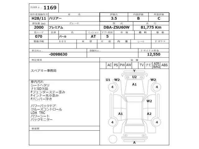 Toyota HARRIER Лот 1169, торги от 08.12.2025