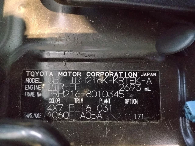 Номер кузоваTRH216K